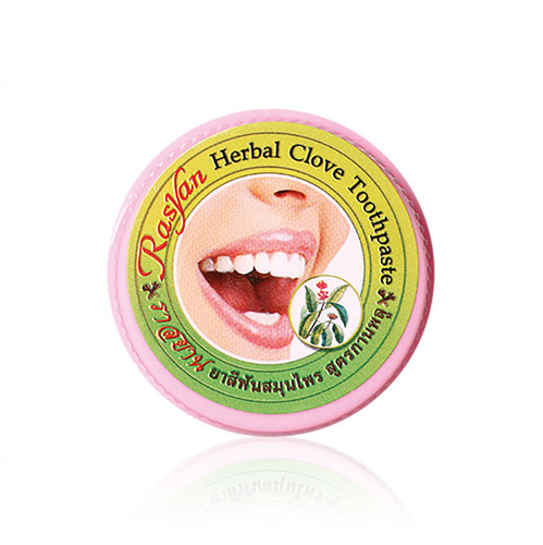 Herbal Clove Toothpaste helps to eliminate limestone from cigarette, tea, coffee and whitening teeth. Reduced to have a hypersensitive tooth and Anti Bacteria. You have fresh breath for a long time. Cloves is the herbal helps to reserve a toothache symptom smell reducing bad breath and Anti-Bacteria.